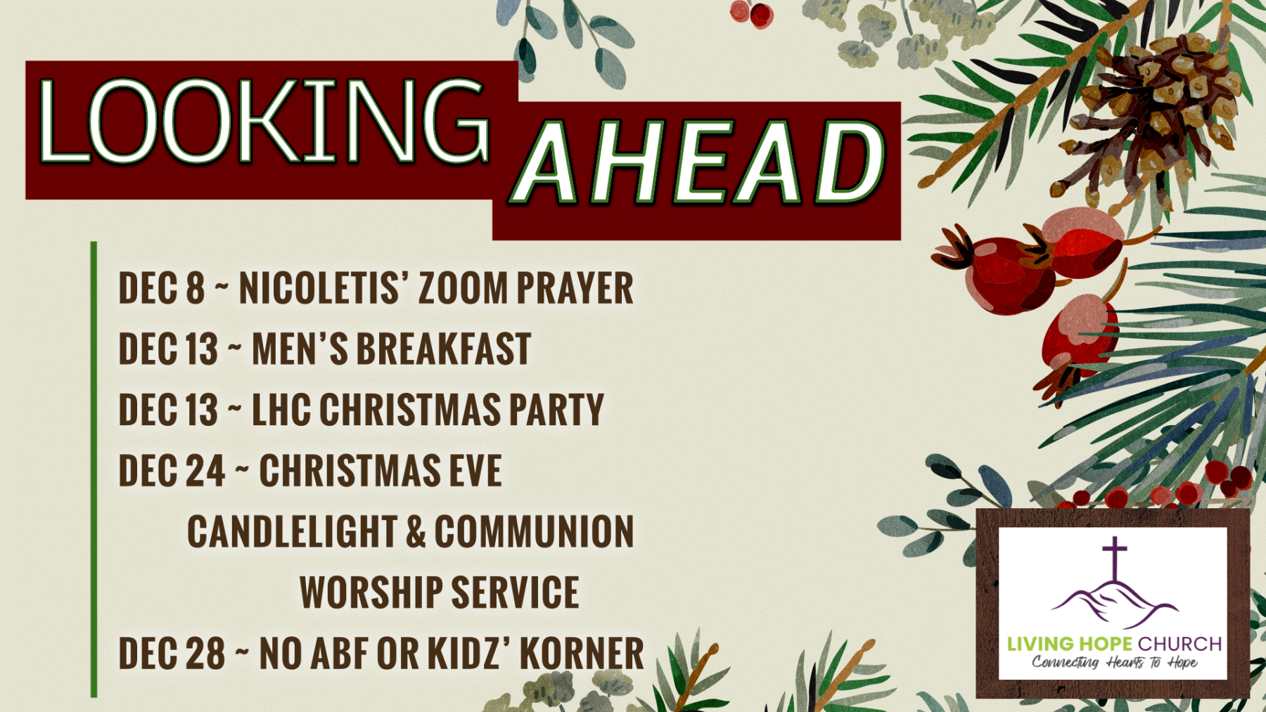 Join us for our annual Christmas Party with a covered dish dinner (please sign up for what you will bring) and a white elephant gift exchange ($15 limit). Merry Christmas!